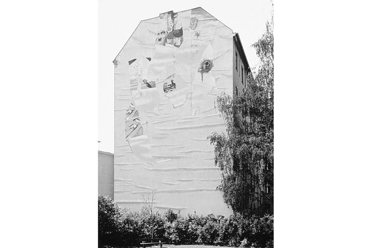 am Haus Goethestraße 13, Juni 1988, Giebelwandbild Aufgerissenes Papier von der Gruppe KWARZ Quelle: Landesbildstelle Berlin